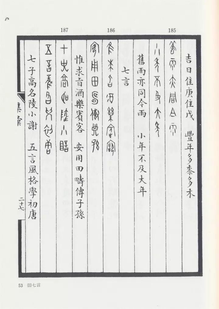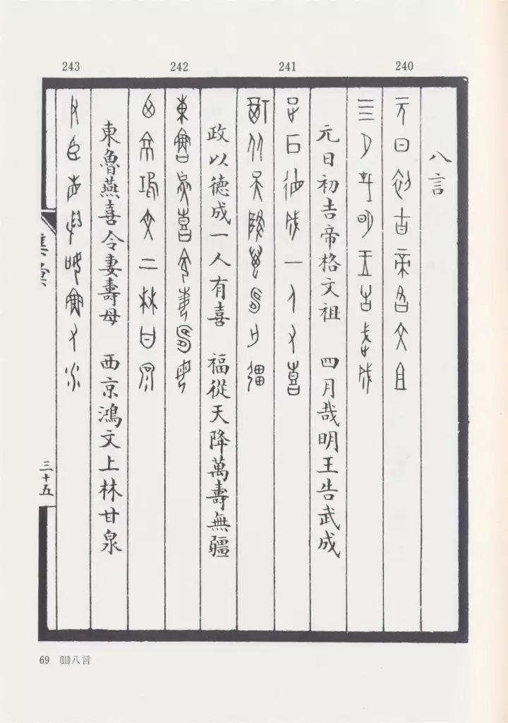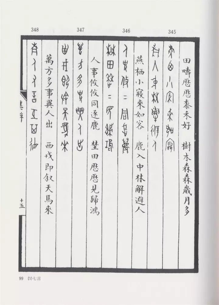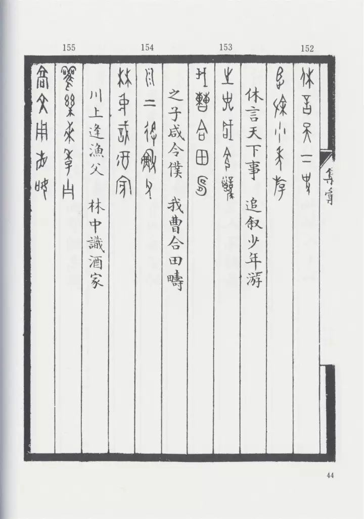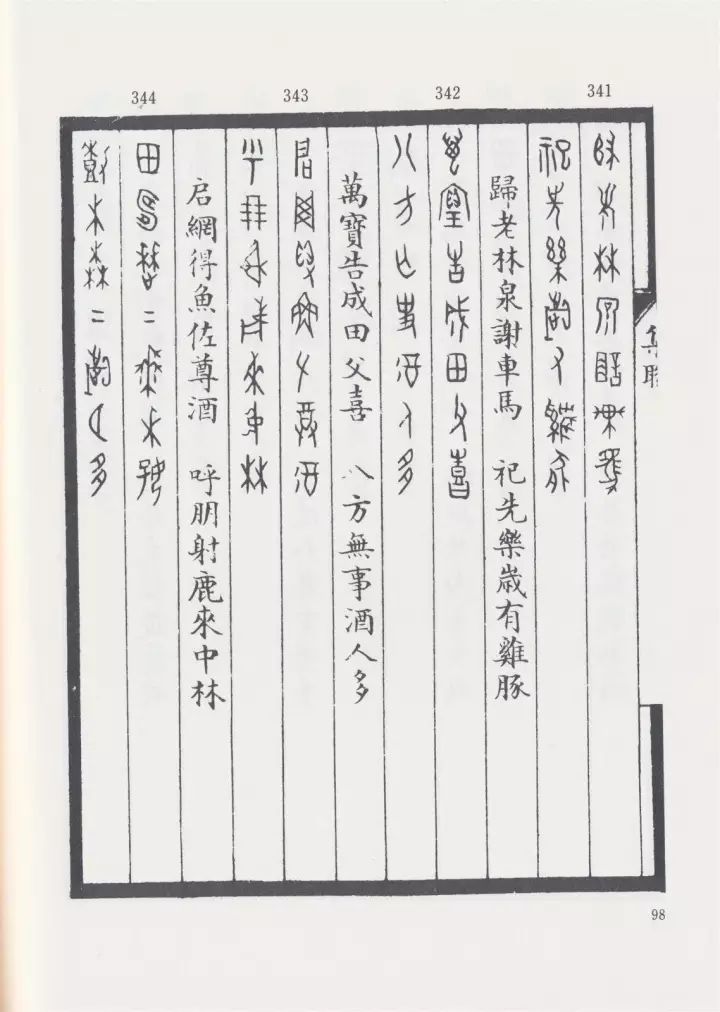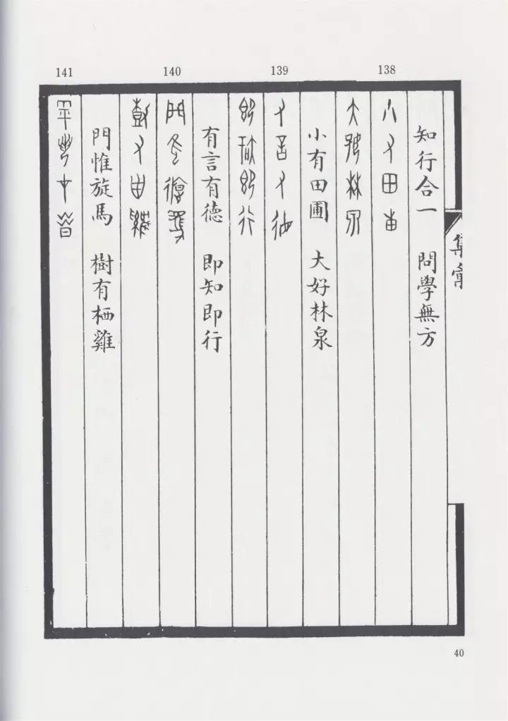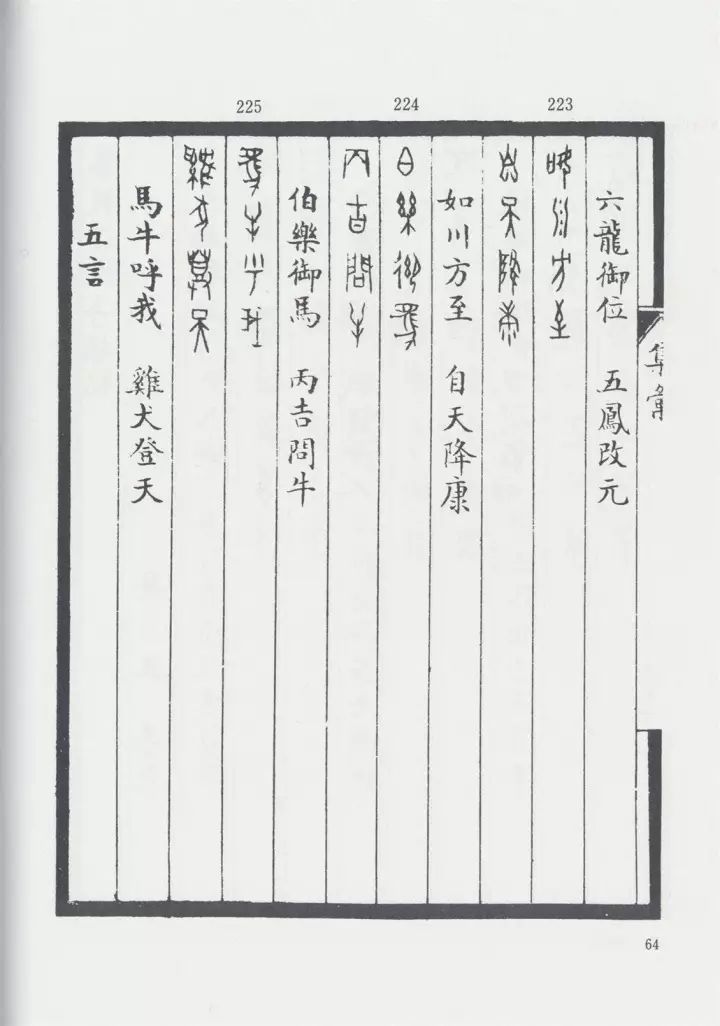 本篇虽名为《殷墟甲骨文楹帖汇编》,但由于《甲骨文墨场必携》本所收各家集联字迹更为清晰,故选用该本图版整本扫描,这里略去了书中日文注释,主要提供楹联图片,以期可解广大甲骨文书家与爱好者之渴。遗憾的是,由于《墨场必携》本与吉林大学出版社的《汇编》本各家顺序不同,故未将《汇编》中书后姚孝遂所作校订全图呈现,计划他日另作补编。