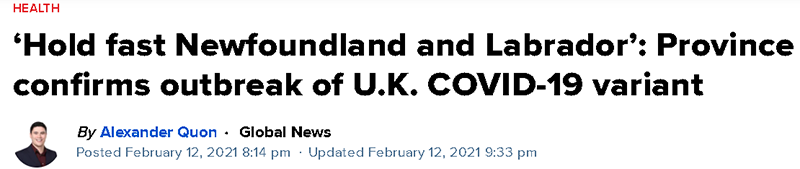 纽芬兰和拉布拉多省首席医疗官詹尼斯·菲茨杰拉德(Janice Fitzgerald)2月12日确认,该省近日突然暴发的新冠疫情就是由在英国发现的变异新冠病毒造成的。过去7天,该省的新增病例数占到了该省累计病例的40%。