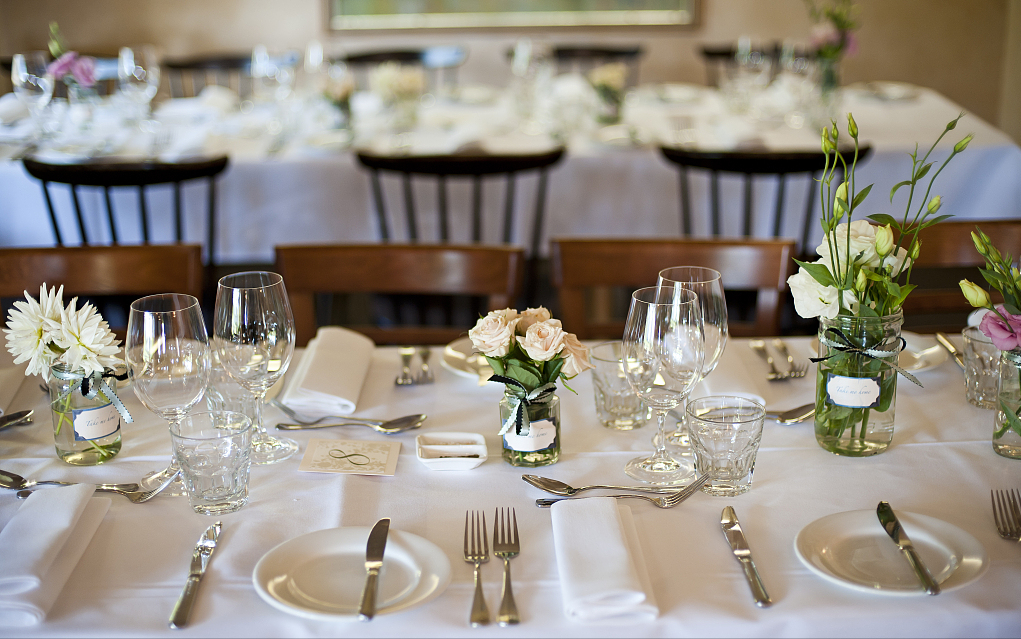 1、餐桌上、甜品台的鲜花装饰