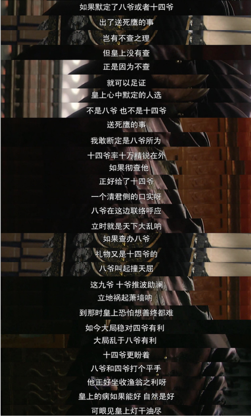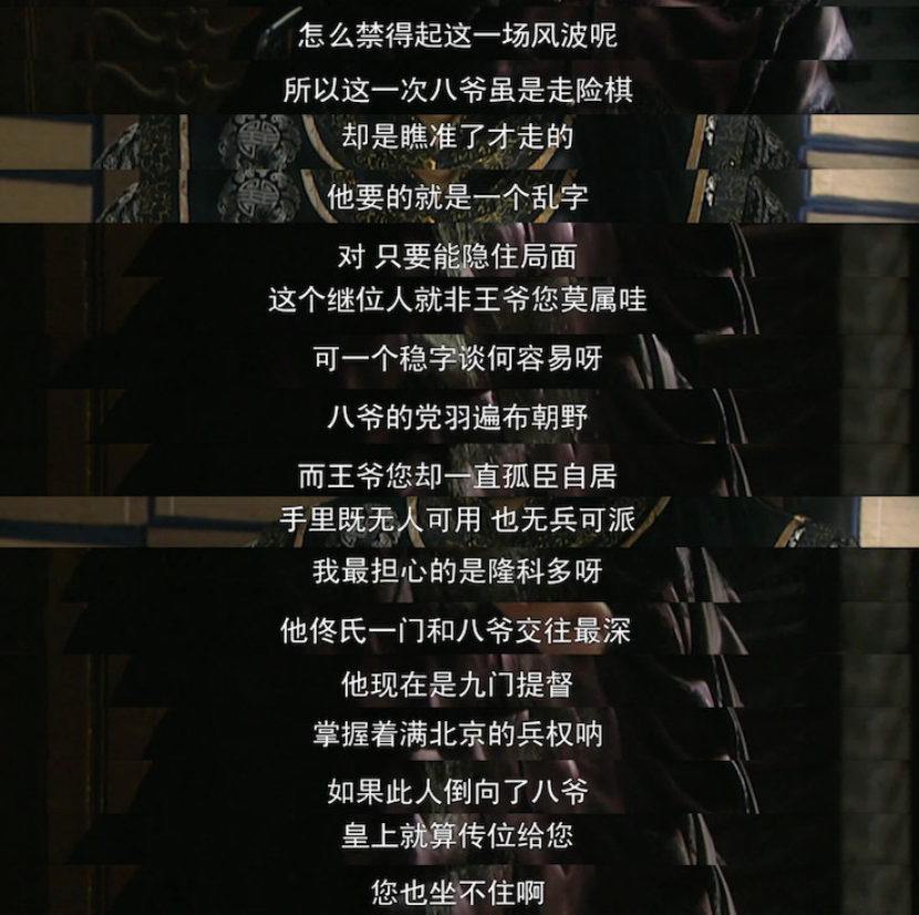 前21集“夺嫡”篇章中的权术斗争,堪称情商教科书,说两处最精彩的地方: