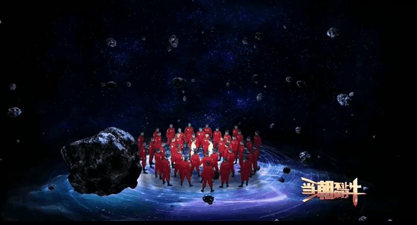 春晚舞台上的武术表演,基本上千篇一律。 但河南春晚另辟蹊径,将太极融入科幻元素。两分半的时间里,观众看到了一副极具未来感的太极表演。 看看这舞台装置,演员穿着宇航服打太极,站在星河宇宙之间,周围都是飘落的陨石。