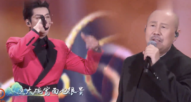 其次,在北京卫视春晚上,当红明星吴亦凡和著名歌手腾格尔,携手演绎《大碗宽面》 一个民族唱腔,一个Rap唱法,二者结合,颇具味道。