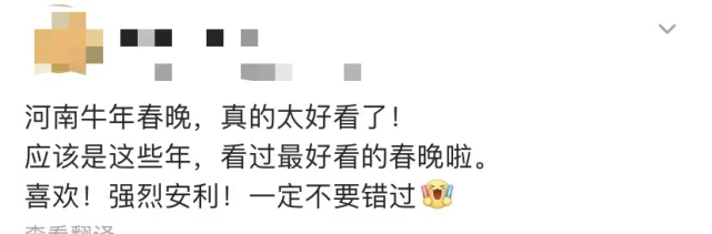 讲真,河南春晚的出圈,没人想得到。 因为太低调了。 宣发全程拉胯,河南春晚腊月二十九就播出了,但火也是这几天。 后续全网没有回放资源,有些网友自发充当“水军”到处安利时,却发现找不到视频。