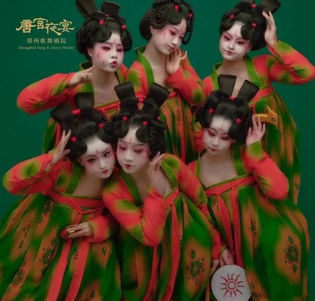 从服饰妆容说起,这次完全仿照唐俑造型设计的,为了看起来贴近唐朝女性,演员们的身上穿着塞海绵的连体衣,嘴里还含着棉花。