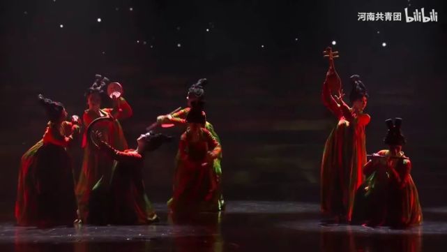 这段舞蹈的精妙之处,就在于演“活”了唐俑,表演者通过脸部表情和日常逗趣,和场景融为一体,再现唐代风华绝貌。