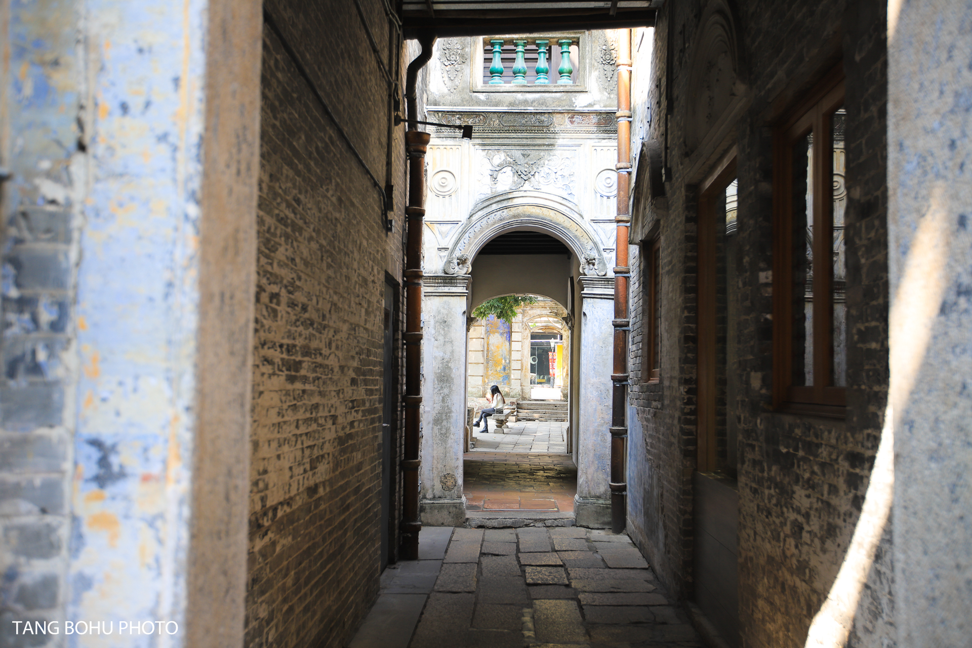 抬头就能看到镬耳式的封火墙连绵起伏,一座座建筑,一处一景,走进小巷子里,现在的岭南天地俨然一派生机。简氏别墅是佛山现存规模最大的民初西洋式大型建筑群,也是省级文物保护单位。每一条小巷子,每一个转角也承载着一代人的旧时回忆。