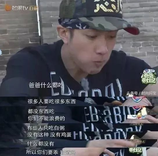 时刻以身作则。neinei挑食,问他怎么什么东西都吃。他就趁机告诉孩子们,每一粒粮食得来都很辛苦,很多人甚至吃不上饭。