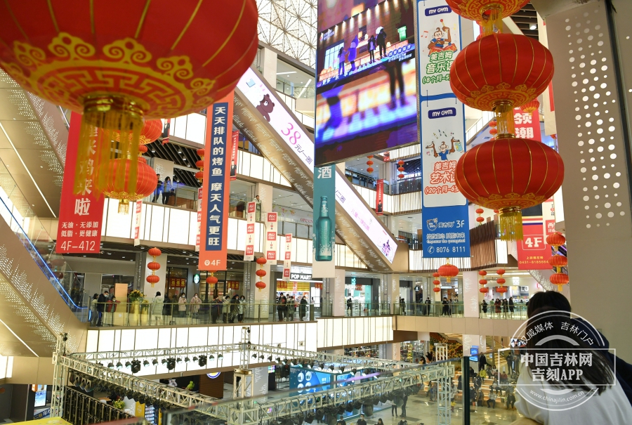 大年初七,商场节日气氛浓厚。