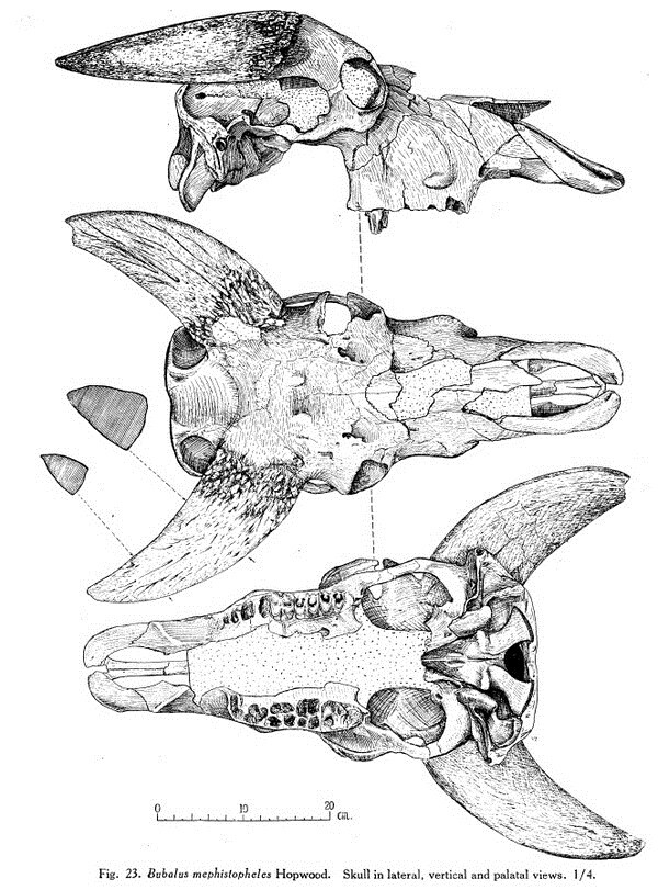 圣水牛的骨骼大量发现于河南省安阳殷墟遗址和浙江省余姚河姆渡遗址中。1925年,古生物学家胡步伍(A.T.Hopwood)就是根据在殷墟发现的水牛骨骼命名了圣水牛(Bubalus mephistopheles)。圣水牛名字的含义并不是“神圣”的意思,命名者胡步伍在看到圣水牛粗短的角心时联想到西方传说中的长角魔鬼梅菲斯特,因此命名,所以叫“魔鬼水牛”更为恰当。不过中国学者在翻译的时候认为魔鬼之意太过夸张,所以就使用了圣水牛这个名字。