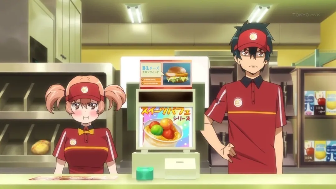 魔王不仅迅速适应了如今的生活,还找到了一份非常适合自己的工作,成为了金拱门炸鸡快餐店的一名兼职员工!