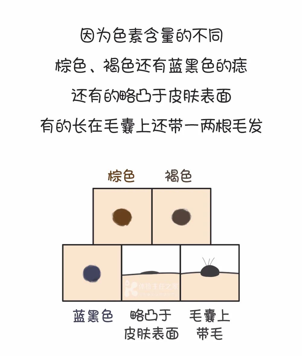 普通的痣大多是黑色或者褐色的,是属于色素细胞的一种良性肿瘤。