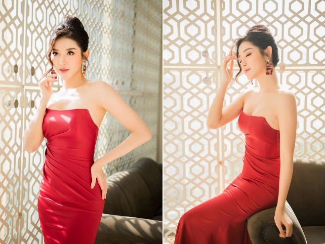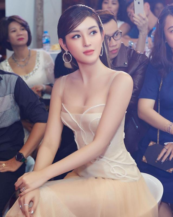 只见照片中参加活动的HuyenMy,身穿淡黄色的抹胸礼服,衬托出了她完美的身材曲线,婀娜多姿。精致的脸庞再配上精致的妆容,一头长发顺滑地披在肩上,眼神坚定的看着镜头,有一种莫名的疏离感,美艳不可方物,高不可攀。如此优秀的HuyenMy每每出现在活动现场,都让周围出现的女星们黯然失色。