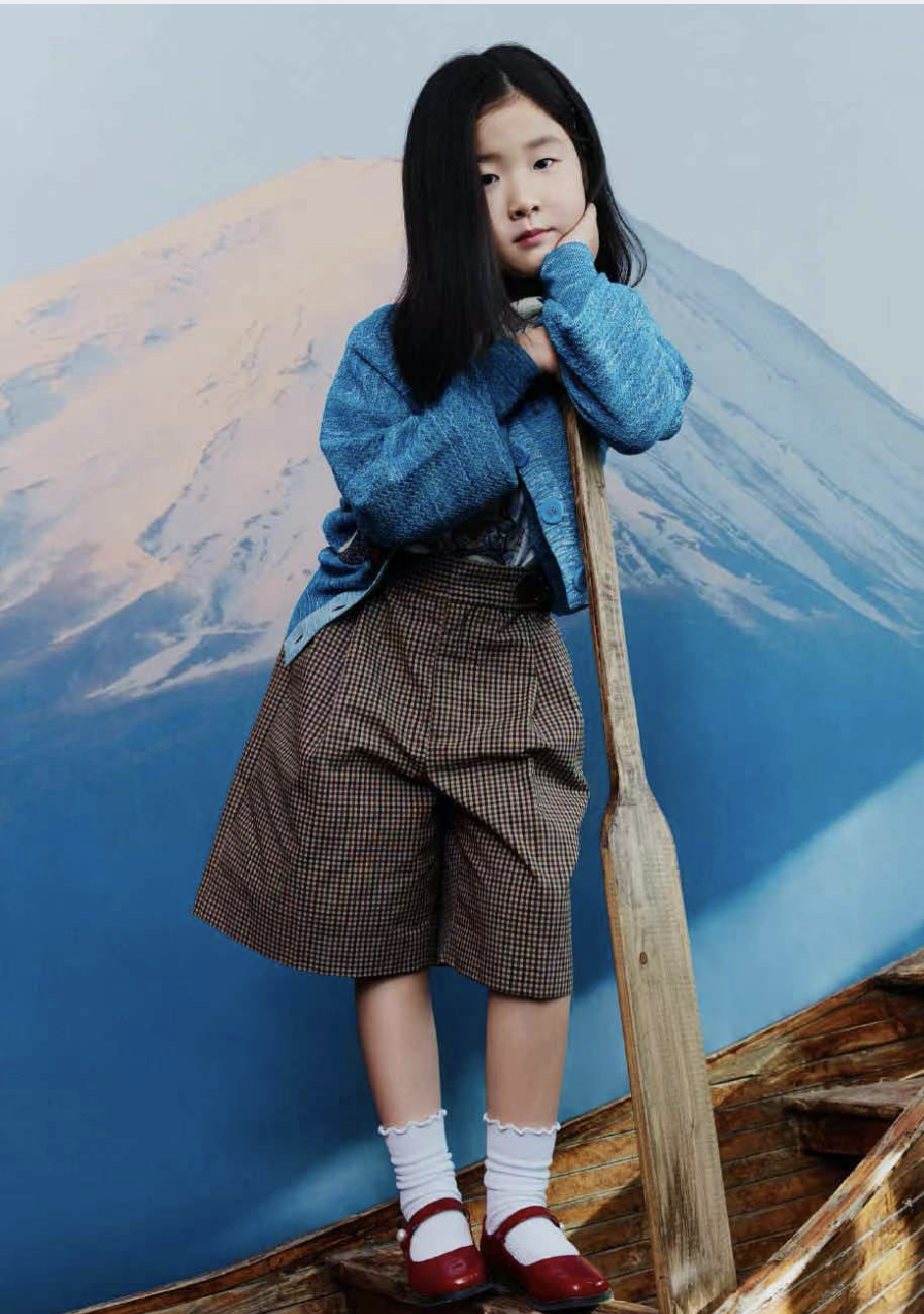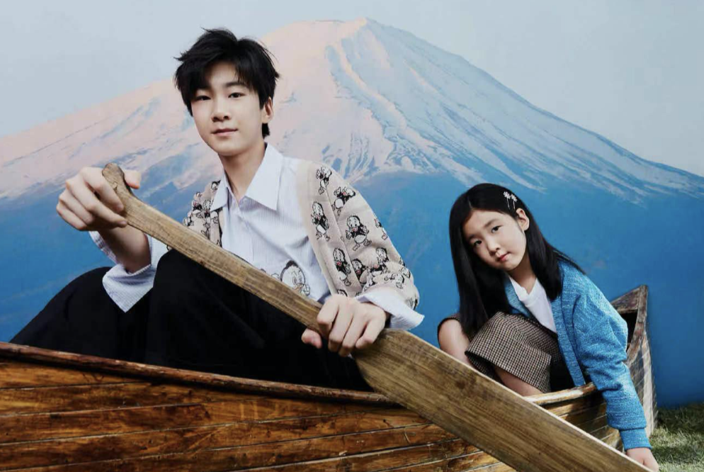 妹妹张雪铱在拍摄大片方面,虽然不如哥哥那样熟练,但也有属于自己的小亮点。她穿着蓝色上衣,搭配英伦风的格纹短裤,脚踩红色的玛丽珍鞋,手随意地撑在船桨上,整体看起来十分自然,没有丝毫刻意之感。