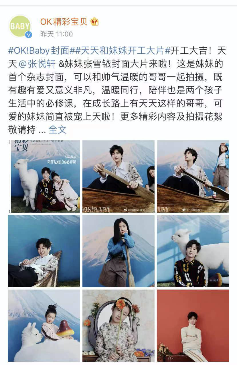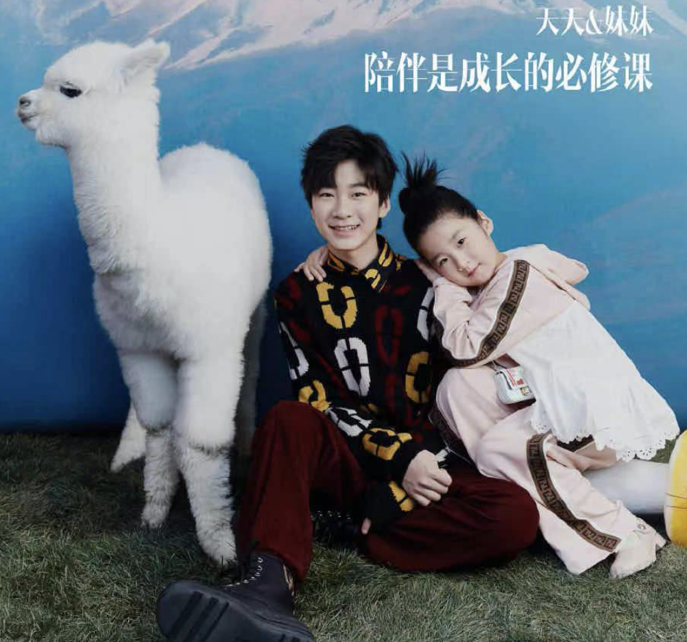 近日,某杂志发布了一组天天张悦轩拍摄的封面大片,让人惊喜的是,天天这次还带着妹妹张雪铱一起拍摄。