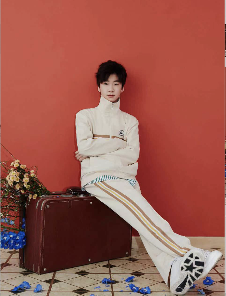 如果说前面两张杂志大片,天天是向大家展现了他童真的一面,那这一张大片中,天天则向大家展现了他的专业素养,小小年纪的天天已经展现出了专业模特的气质。他穿着一身浅色运动服,发型稍显凌乱,他一双长腿伸直,双手抱臂,最精彩的是天天的表情,带着一股酷劲儿,和前面的暖男形象大不相同,像极了名杂志中冷脸的模特。看来天天已经很好的遗传了爸爸张亮的特点,在模特方面有自己的天赋。