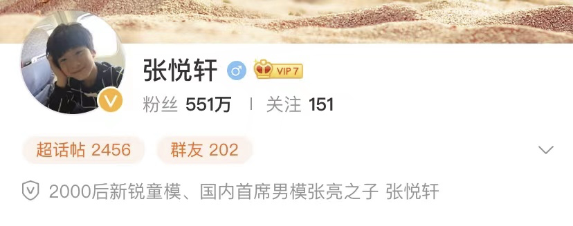 连天天自己的微博认证都写的是“2000后新锐童模”,后面才是“国内首席男模张亮之子”。