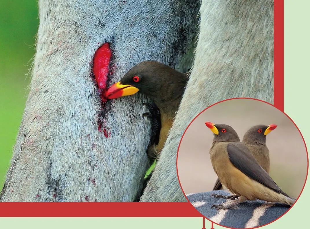 有两种鸟,最喜欢趴在大型动物的身上,定期为它们清理毛发里的寄生虫。然而,在偶然尝到皮肤之下的血液以后,它们变得越来越“嗜血如命”。