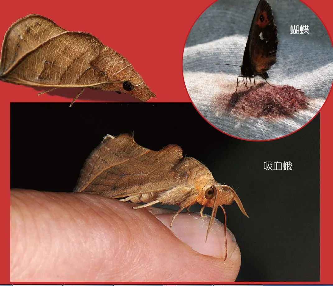 大多数飞蛾、蝴蝶都喜欢吃无机盐含量高的东西,比如盐水、眼泪、汗液、尿液等,而植物里的无机盐含量较少,所以它们会将目光放在动物身上。虽然大多数飞蛾、蝴蝶不会主动刺破动物的皮肤,但只要有机会,它们绝对会一拥而上,吸食大型动物尸体残留的血液。而吸血蛾更凶猛,它们会趁猎物休息时“偷袭”,甚至主动攻击,叮咬其皮肤并吸食血液,其中还包括人的血。