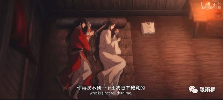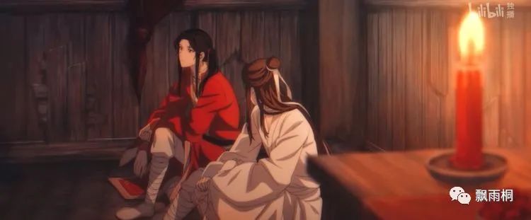 晚上,花城伸出手却不敢触碰自己的神·明。临走的时候,将自己的骨灰化成戒指送给谢怜。至情至性,你懂的。谢怜醒来,找不到花城。却看到了这骨灰戒指,然后急匆匆跑回屋里。这时候,画面太美了、美到我直接泪流满面。谢怜与花城,可是双向奔赴啊。先是,谢怜接住了坠楼的小孩。然后,花城接住了跳下罪人坑的谢怜。还有,花城这个“新郎”牵着谢怜开心地走着。花城,画出“太子悦神图”......