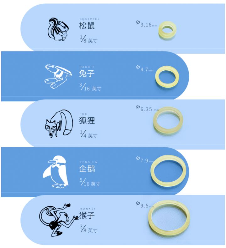 我们常见的正畸橡皮筋包装都是一些小动物,这些动物图案可不是随机的,它们是代表着不同的型号,用于患者区分和认知。