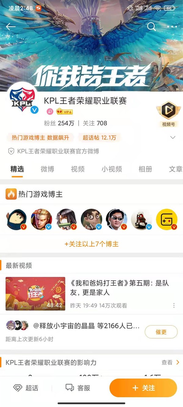 截至发稿,KPL官方微博粉丝数达到了254万,#KPL#微博话题粉丝超过了37万,话题阅读数高达79.9亿!庞大的流量支持为KPL带来了更大的联盟影响力。