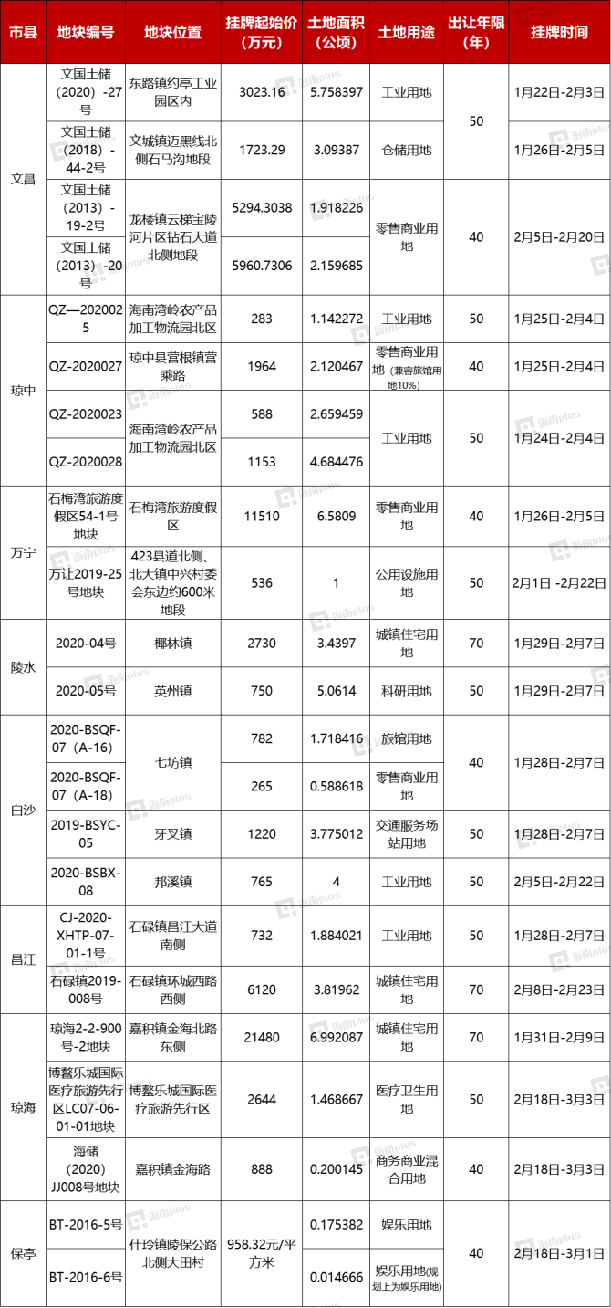 在1月挂牌的土地中,城镇住宅用地仅3宗地,除了陵水之外,昌江石碌镇环城西路西侧出让的城镇住宅用地,根据要求,该地块限定建设专门面向昌江核电员工及昌江核电关联产业人员供应的普通商品住宅,竞得人在开发建设、销售等相关环节应按我省有关住房限购和人才住房政策执行。