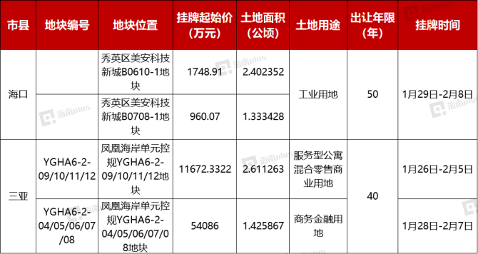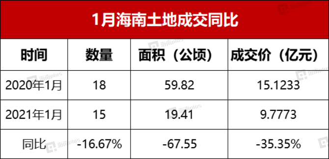 1月,海南共挂牌出让31宗地,总面积107.3958公顷;共成交15宗地,总面积19.4128公顷,9.7773亿元。