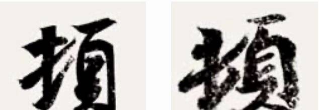 左:王羲之丧乱帖之“顿”字