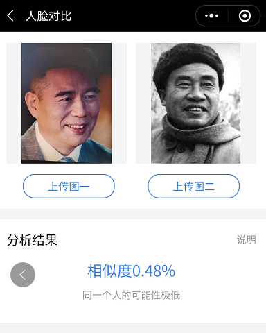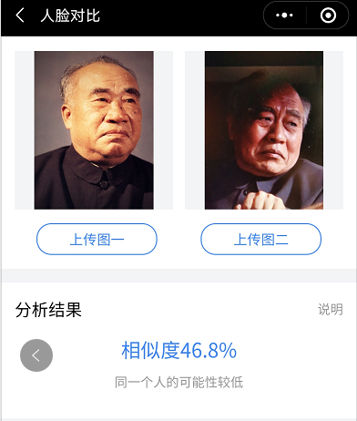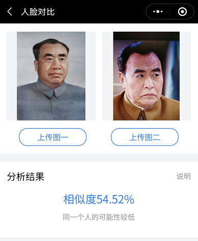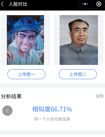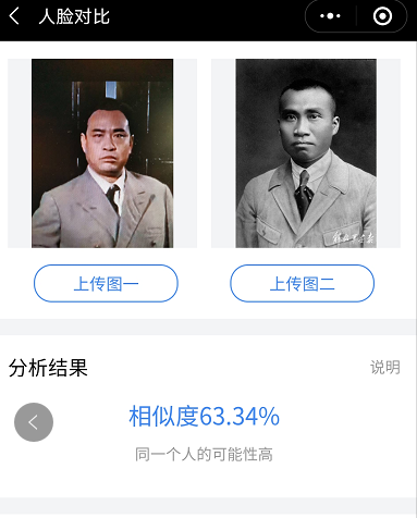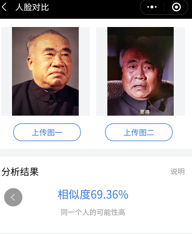 不过笔者也发现,在王伍福扮演晚年的朱德的时候,相似度分值较高,对比软件认定是同一个人。
