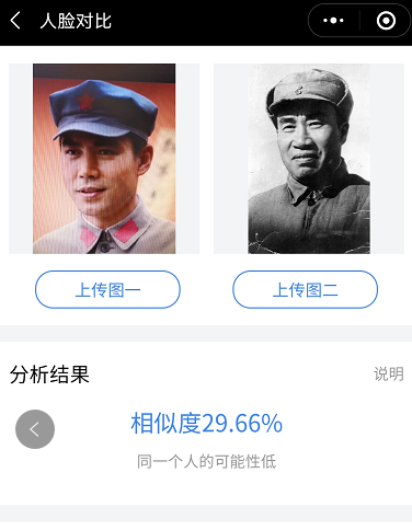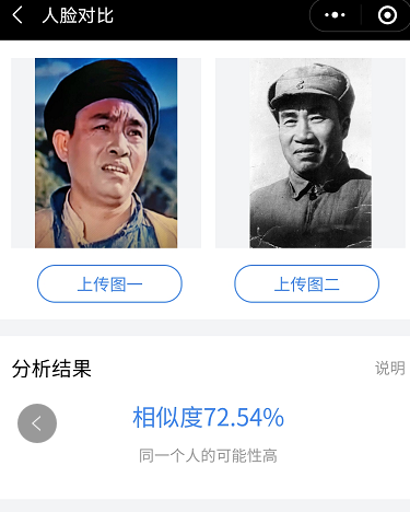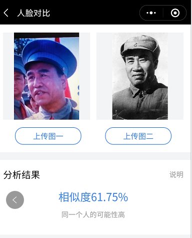 1982年八一厂拍摄的《风雨下钟山》中扮演朱德。我们再看看比对结果: