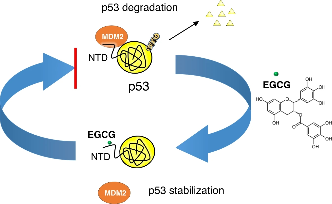 图片来自Nature Communication. 12 February 2021, EGCG binds intrinsically disordered N-terminal domain of p53 and disrupts p53-MDM2 interaction