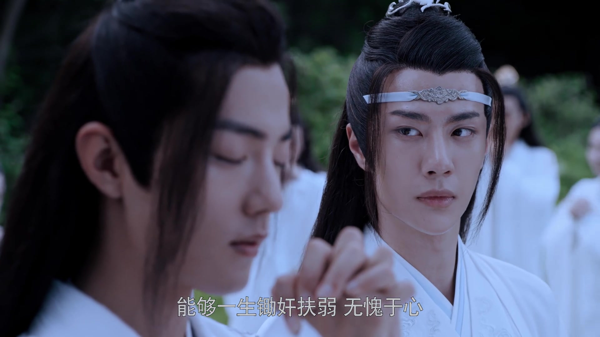 蓝忘机注意到兔子灯,想起了求学时与魏无羡共同放灯的片段,共同许下的誓言。还记得那天傍晚,魏无羡画了一只兔子灯送给他,他的双眸映着魏无羡的侧脸,清楚地听到那句许愿:“许我魏无羡一生锄奸扶弱,无愧于心!”
