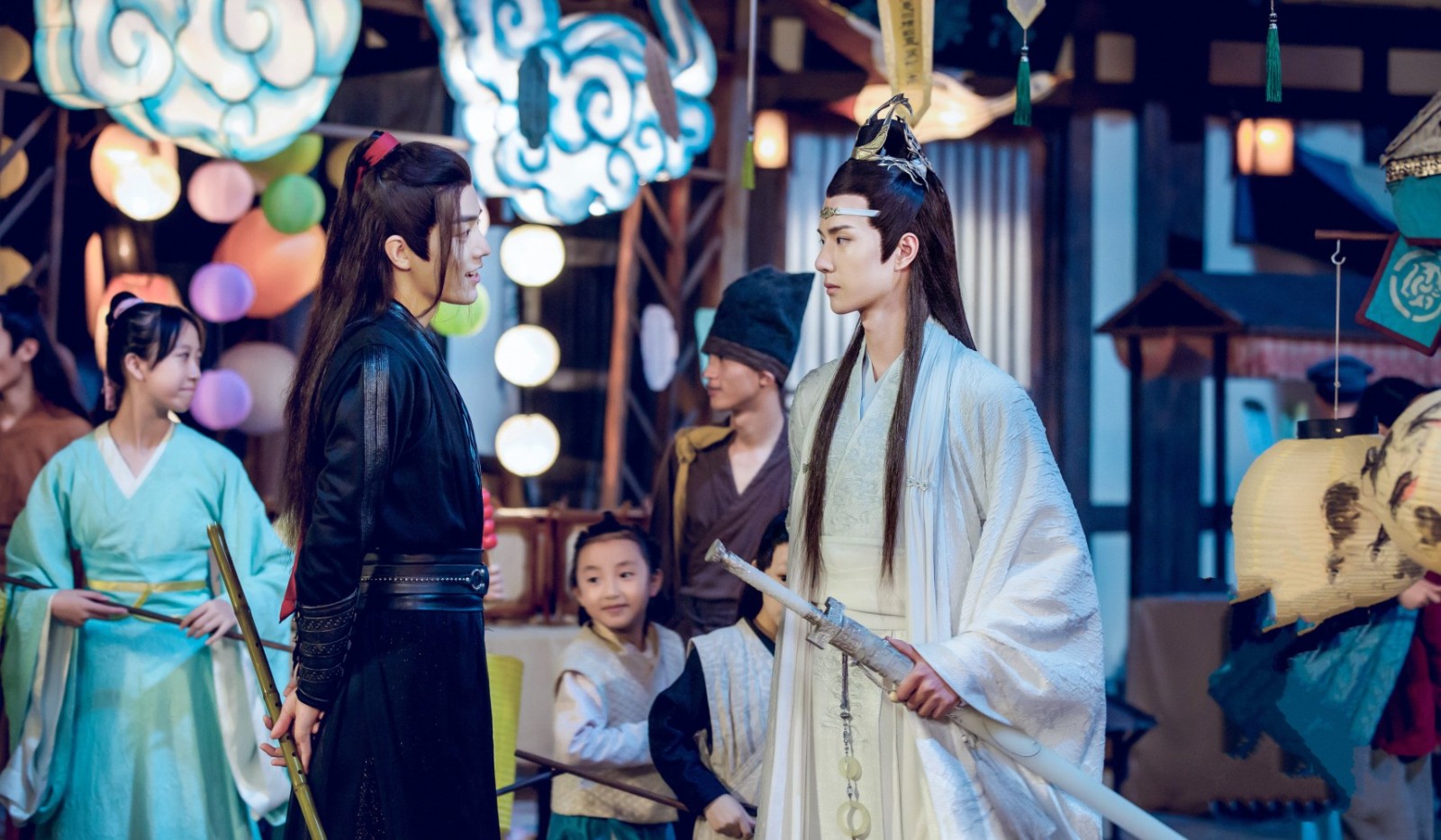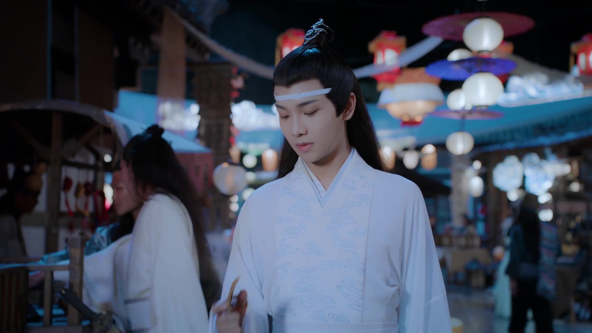 魏无羡回头,发现蓝忘机在不远处望着他,那双眼睛,充满着了然与担心,却又如此坚定与温和。周围的热闹与喧嚣仿佛与二人无关,两个人对视而笑。(这个画面真的绝了,有一种“蓦然回首,那人却在灯火阑珊处”的古典美感)