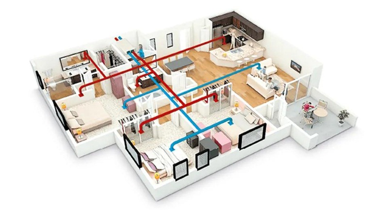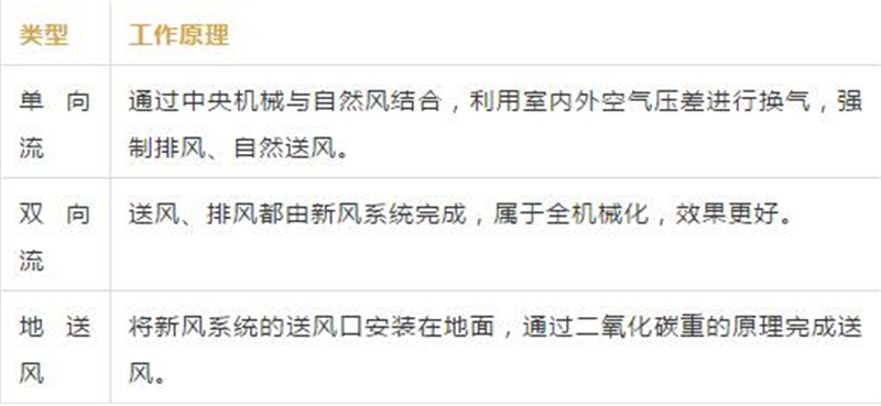 新风系统工作原理简单来说可以分为三类:单向流、双向流、地送风。