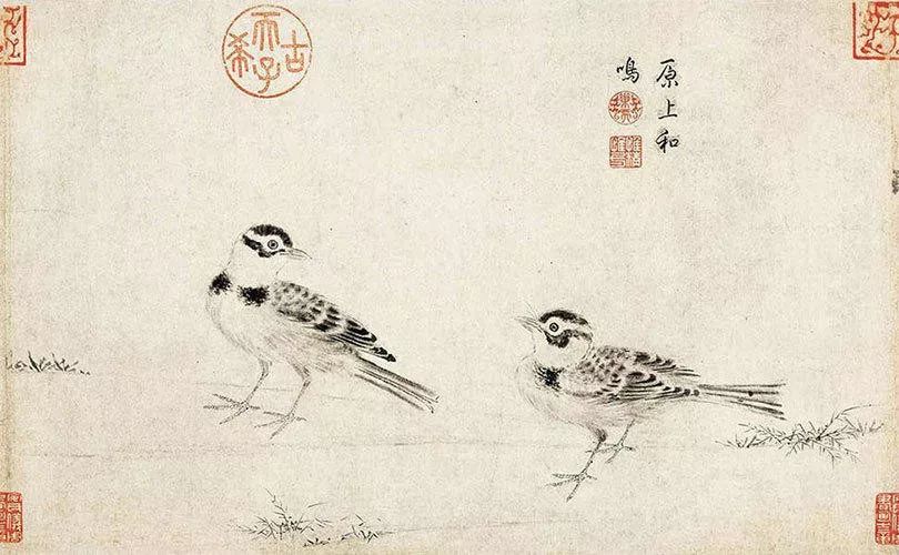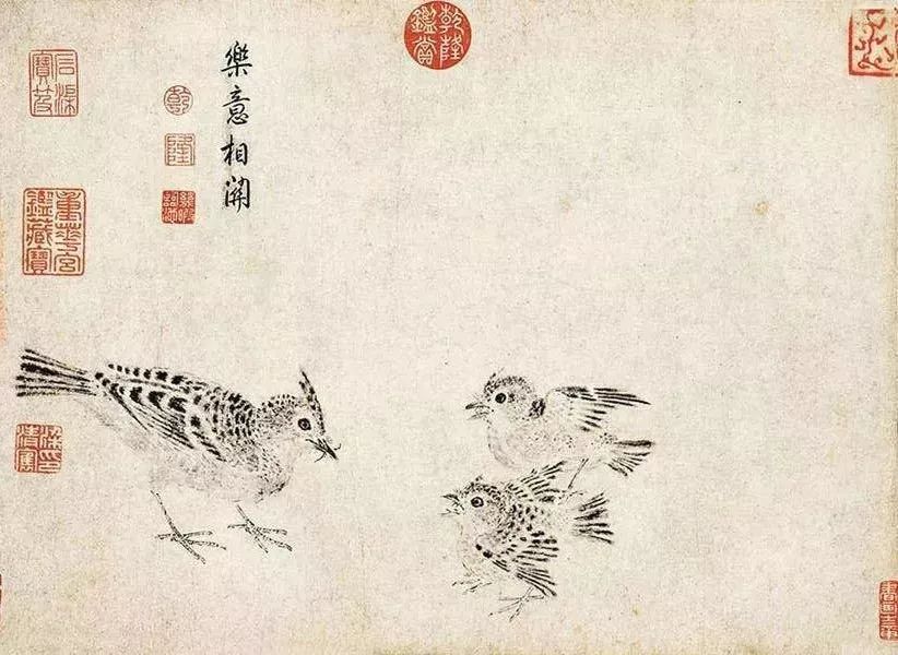《写生珍禽图》最早应是在北宋末年,靖康之乱时,流出宋内府。随后400年间,辗转于民间。清初相继进入收藏家梁清标和安岐之手,并经安岐入乾隆内府,随后被收入《秘殿珠林石渠宝笈》。