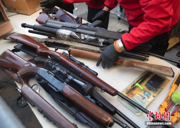 图为美国警方整理回收的枪支。中新社记者 刘关关 摄