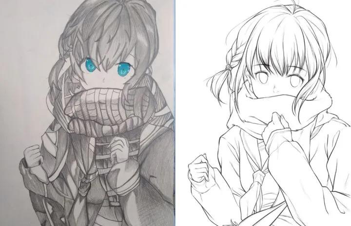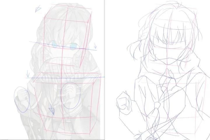 然后针对原作线稿调整的问题,先分享一个改画实例,左边是原图,右边是调整后: