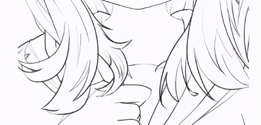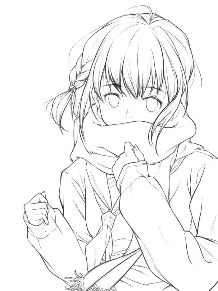 而且因为是不上颜色的黑白,基本靠线来处理层次,线稿也不用完全闭合。所以像头发的末尾、围巾的转折、衣纹的边缘都可以用细线来处理: