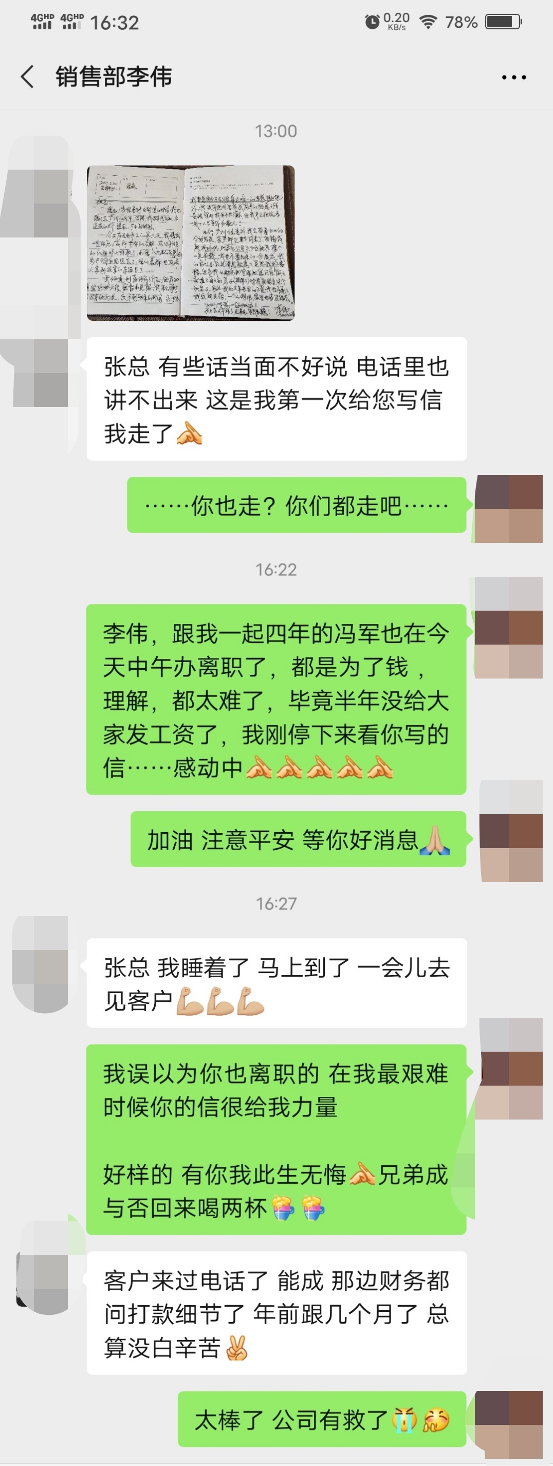 一男子“不辞而别”深夜写了一封信拍照发给了老板。老板看后感动哭了,老板:“此生无悔”;员工:“三生有幸”。到底怎么回事呢?我们先来看看员工发的消息和这封信。
