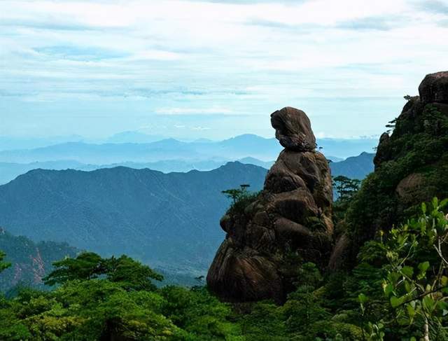 与成名千年的巫山神女峰不同,三清山女神峰走进大众视野还是上世纪90年代,主要还是本世纪初以来的事。女神峰位于世界自然遗产、世界地质公园三清山,距江西省上饶市主城区78公里,面朝三清山另一标志性景观“巨蟒出山”,起初命名为“司春女神”,2008年起被称作“东方女神”。女神峰通高86米,整座山体造型就像是一位秀发披肩的美丽的少女端坐在这里,手上捧着一对青松,栩栩如生,楚楚动人,天然浑成,美妙绝伦,成为三清山标志性景观与艺术珍品!