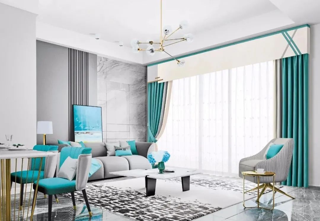 客厅中的家具以及饰品扮演着非常重要的角色,窗帘可以选择浅色调、透光性好,较薄的布料,可以营造出庄重简洁、大方明亮的视觉效果。