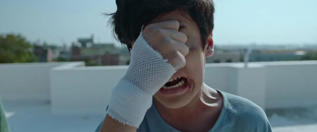小光长年受到教师的性侵犯,尽管事件的败露促使校长调走涉事的教师,但身心还未健全的小光必定早已百孔千疮,无法承载痛苦的他,顶着悲痛狰狞的面孔,与男教员在天台吐露,自己多年后再次见到侵犯自己的涉事教师反而很开心。