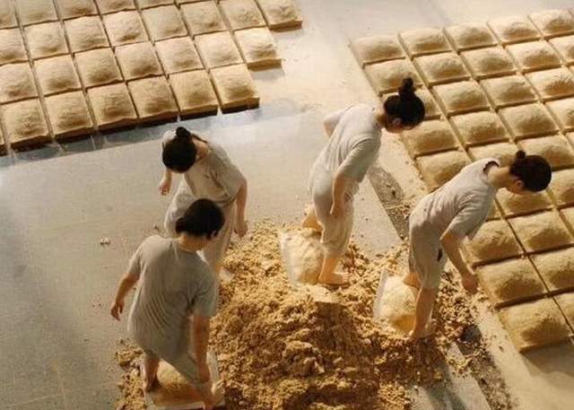 还有一种说法,少女的纤纤玉足分泌物少,霉菌少,流汗少,更能够确保酒曲的酸碱度不会产生比较大的变化,在多种酿酒微生物平衡快速的生长繁殖同时,还能保证微生物种类的多样性。有人说光脚踩曲,脚那么脏,那酒还能喝吗?茅台历来都是这么酿造的,这是工艺的独特性之一。没有这个踩曲这个环节,就没有茅台酒,没有少女踩曲,就没有酱香酒的优雅细腻。