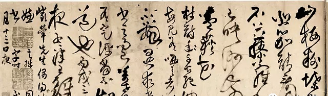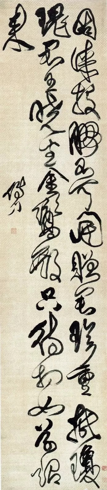 他的草书点划与使转兼重,顿挫转折,用意精到,因此脉络清晰,但又绝不安排,总能以意驱笔、因字造型,故浓淡枯湿、随手生发,疾迟衄挫、取次相从,大小、欹正、展蹙、依倚、起伏,无不能顺势调整,宛如宿构。
