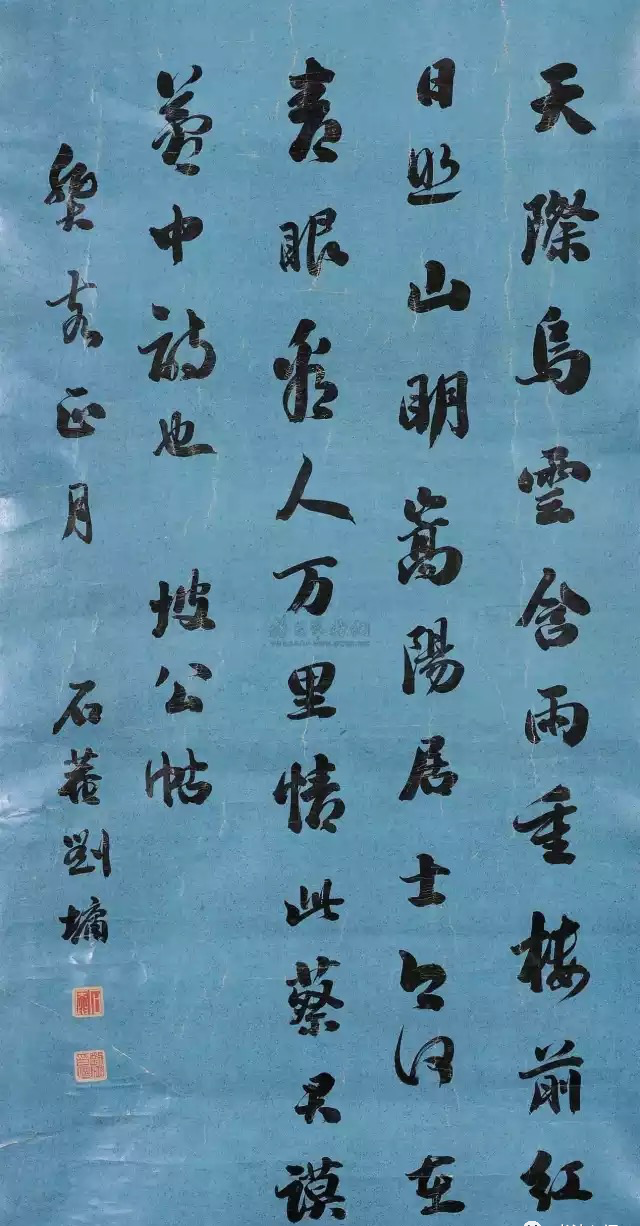 刘墉(1719~1804),字崇如,号石庵、石菴、石盦、木菴、青原、香岩、勗斋、东武、溟华、日观峰道人等,山东诸城人。他是乾隆年间的重臣,历任翰林院编修、江苏学政、内阁学士、湖南巡抚、左都御史、工部尚书、上书房总师傅、吏部尚书、协办大学士等职,嘉庆初官至体仁阁大学士、加太子少保,卒谥文清。著有《石庵诗集》。他的书法由董、赵入手,而后遍临晋唐宋诸家,尤得力于苏东坡、颜真卿和晋唐小楷,融会贯通,自成格局。其书点划丰腴处短而厚、细劲处含而健,对比强烈;结字内敛拙朴,而决不拥塞,端重稳健中透出灵秀;章法轻重错落,舒朗雍容。整体风格含蓄蕴籍,精气内敛,浑若太极,貌端穆而气清和,有硕儒老臣的持重,无恃才傲物的轻佻,似乎包有万象而莫测高深,洵然可敬。因为喜用浓墨,时号为“浓墨宰相”。