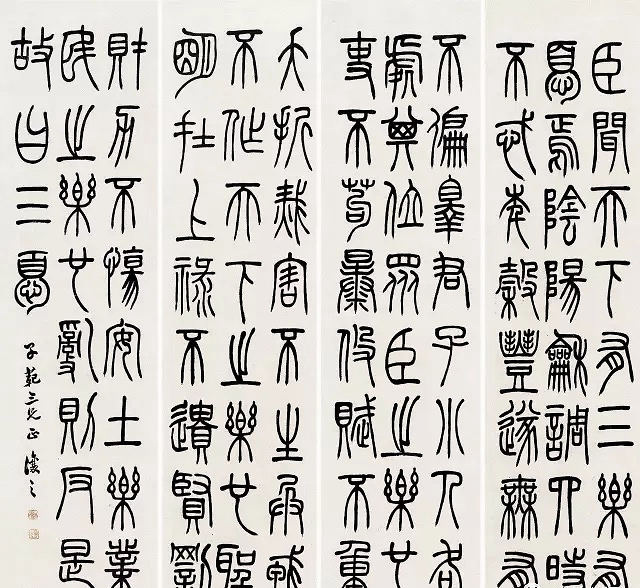 张廷济、朱为弼和徐同柏都善于金文大篆,他们三家可以看作清代学习先秦篆书比较有影响的先驱者,虽然他们的成就还不能算是很高深,特别是如何使用笔墨来表现大篆的气息,应该说还没有达到理想的效果。