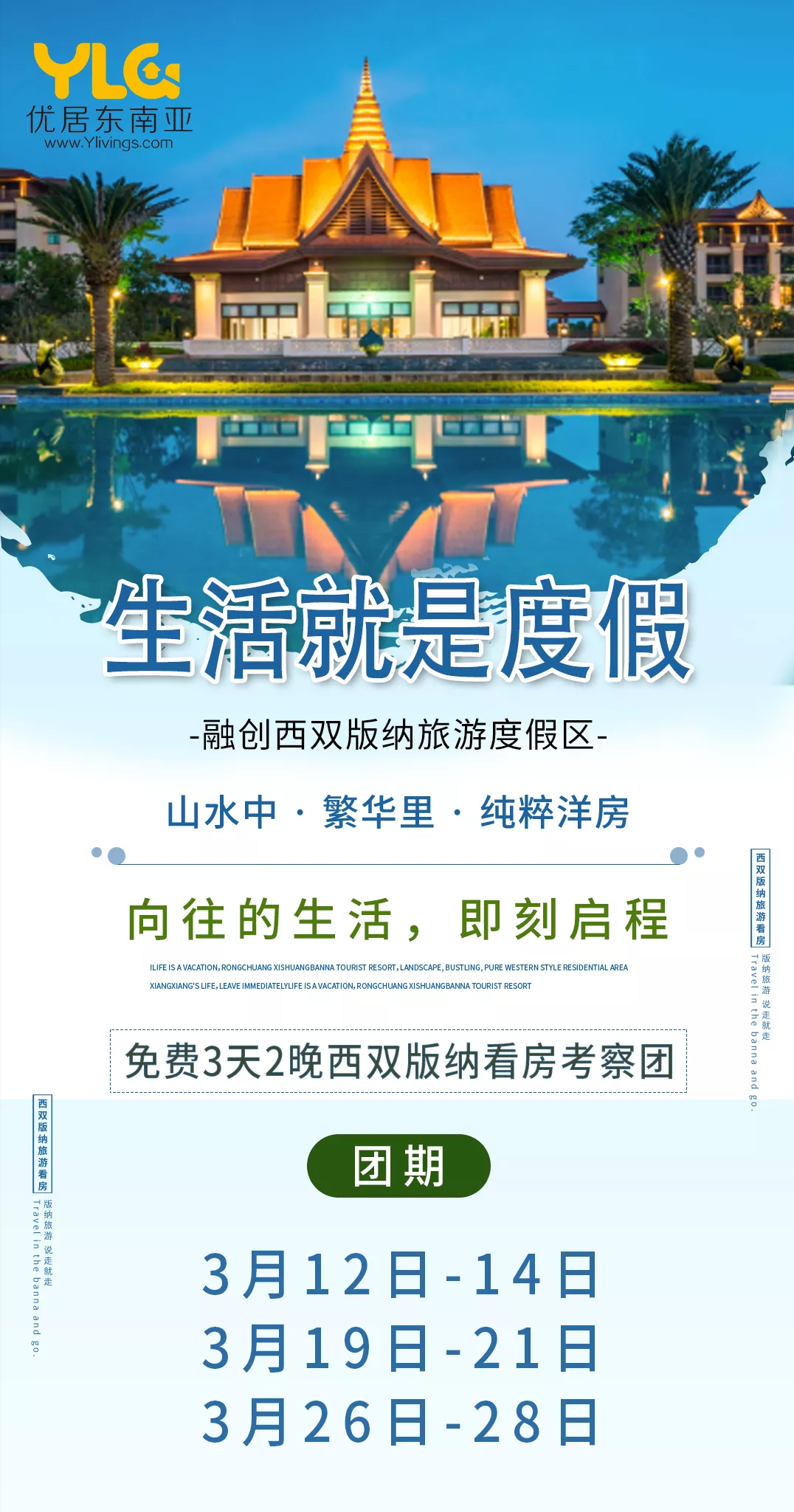 优居东南亚携手开发商融创集团感恩回馈新老业主,举办3天2晚西双版纳考察看房团,欢迎报名参加!