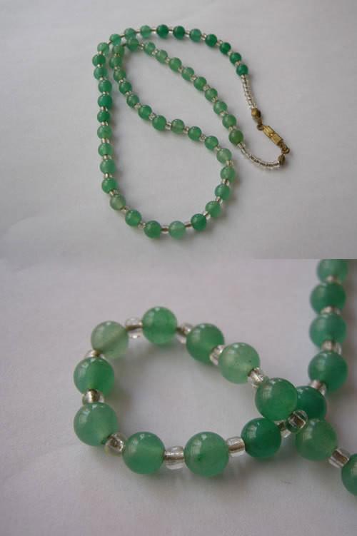 东陵石用手掂非常轻。像上图所示的项链仅仅只要几十元,但如果是翡翠,这样均匀通透的绿水色,就是价值十几万的东西。