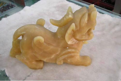 估计许多朋友都见过类似的玉种。米黄玉,准确地说是大理石,这类玉不能称为玉,只能算是一种石材。因产量大,所以价格不高,从几十元到几百元不等。