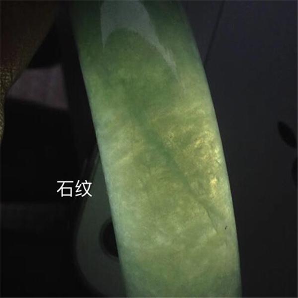翡翠的石纹与裂隙不同,翡翠的石纹没有破坏翡翠的内部结构,因此不会阻止光线的透射。